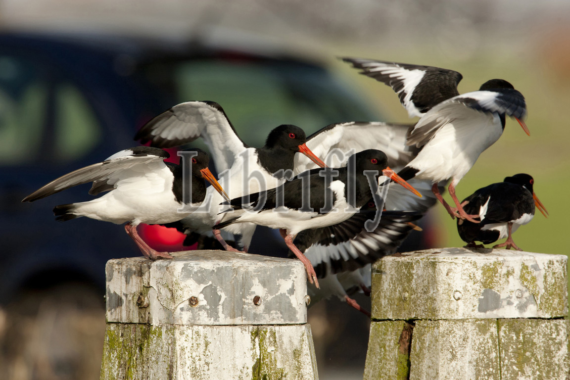 Eurasian Oystercatchers, mooring post, Netherlands, Haematopus ostralegus, nature, bird, animal, wildlife, wild, fauna, natural, feather, sky, beak, wing, outdoor, freedom, colourful, Liszt, Natural History, ornithology, vertebrate animals, photography, color image