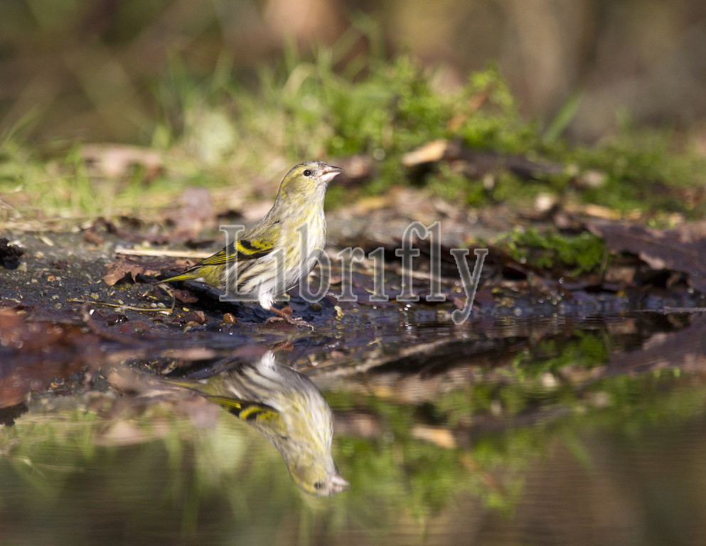 Eurasian Siskin female drinking, Spinus spinus