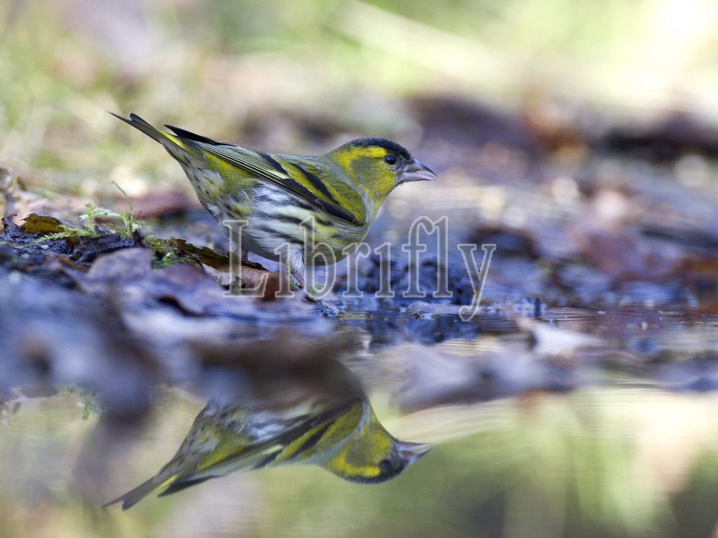 Eurasian Siskin male drinking, Spinus spinus