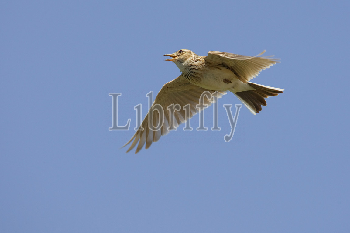 Eurasian Skylark in song flight, Alauda arvensis, Italy