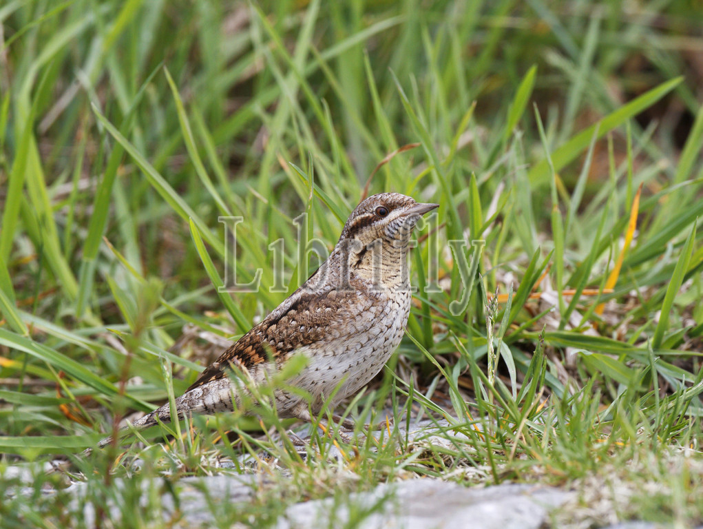 Eurasian Wryneck on the ground, Jynx torquilla, Netherlands