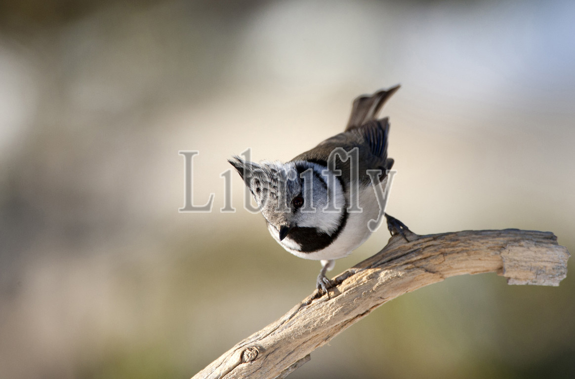 European Crested Tit perched on a branch, Lophophanes cristatus