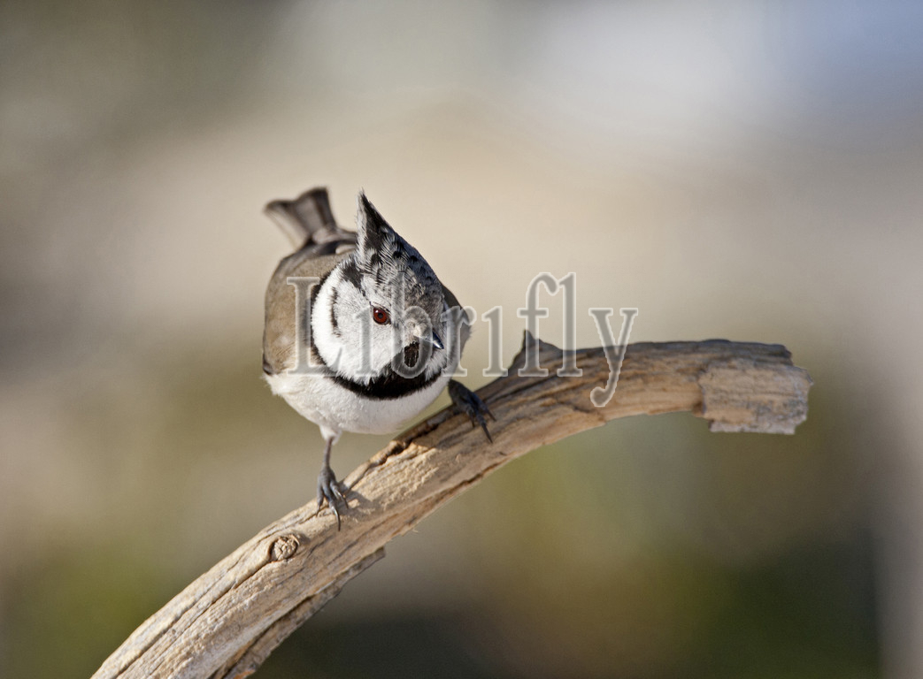 European Crested Tit perched on a branch, Lophophanes cristatus