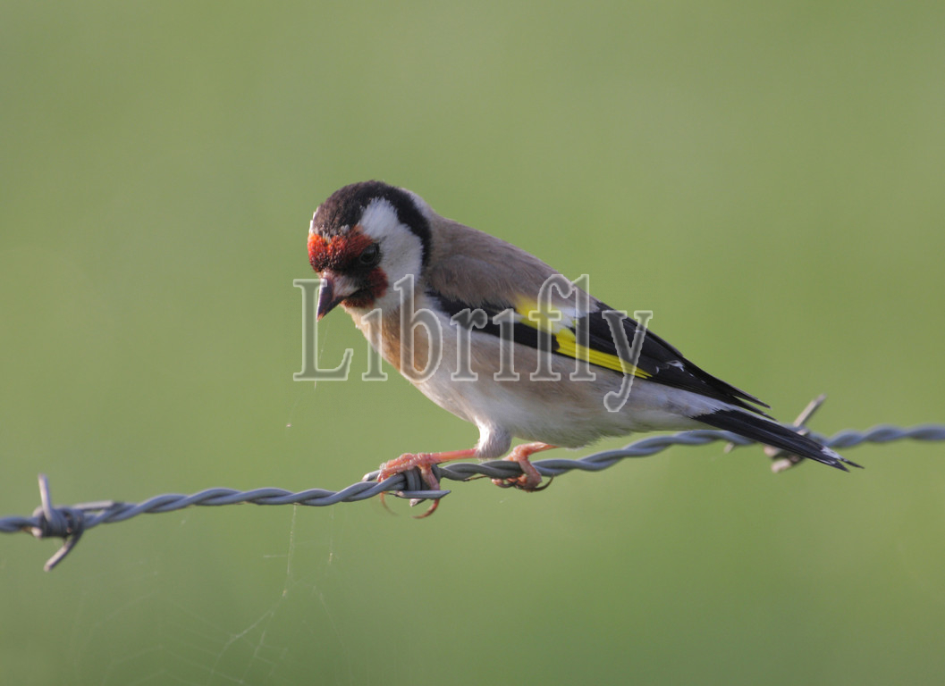 European Goldfinch perched on barbed wire, Carduelis carduelis