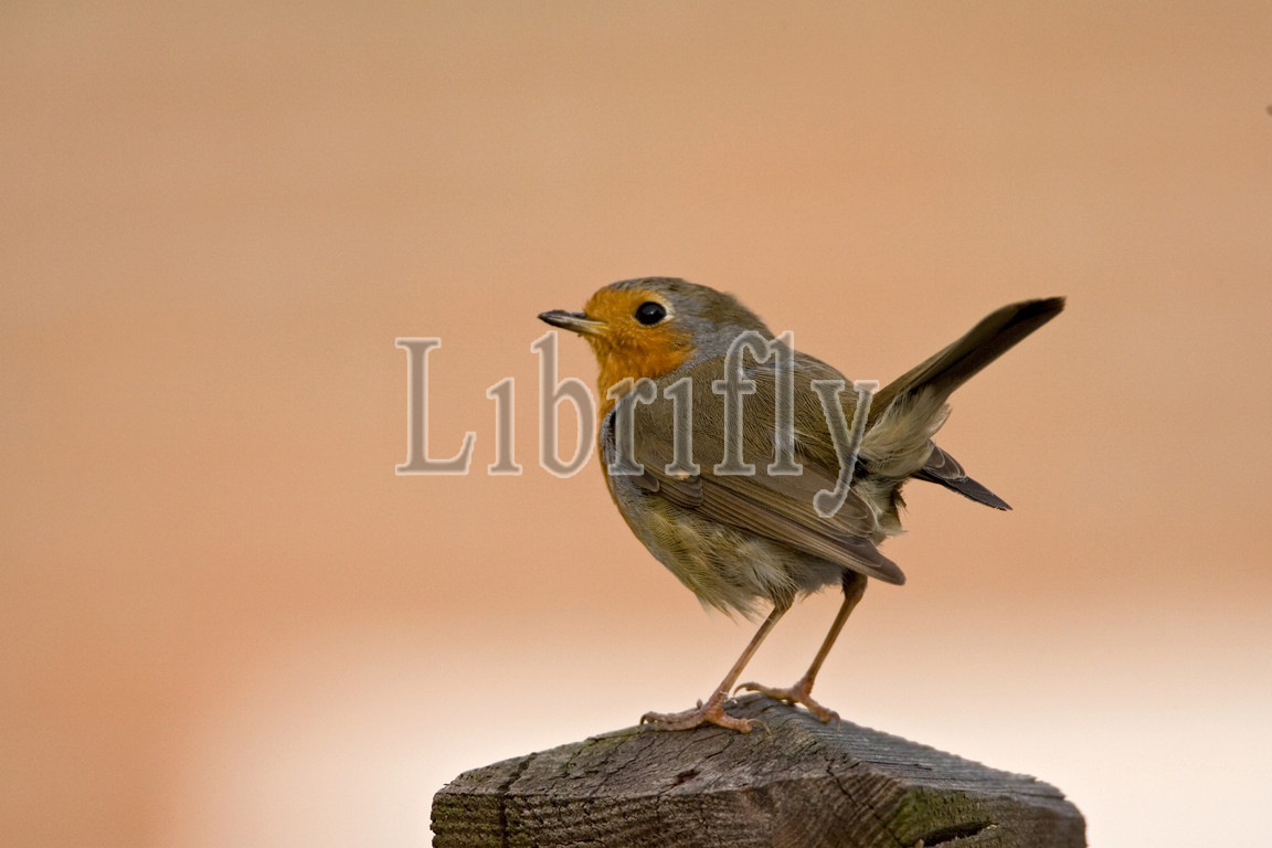 European Robin perched on a gardenfence, Erithacus rubecula