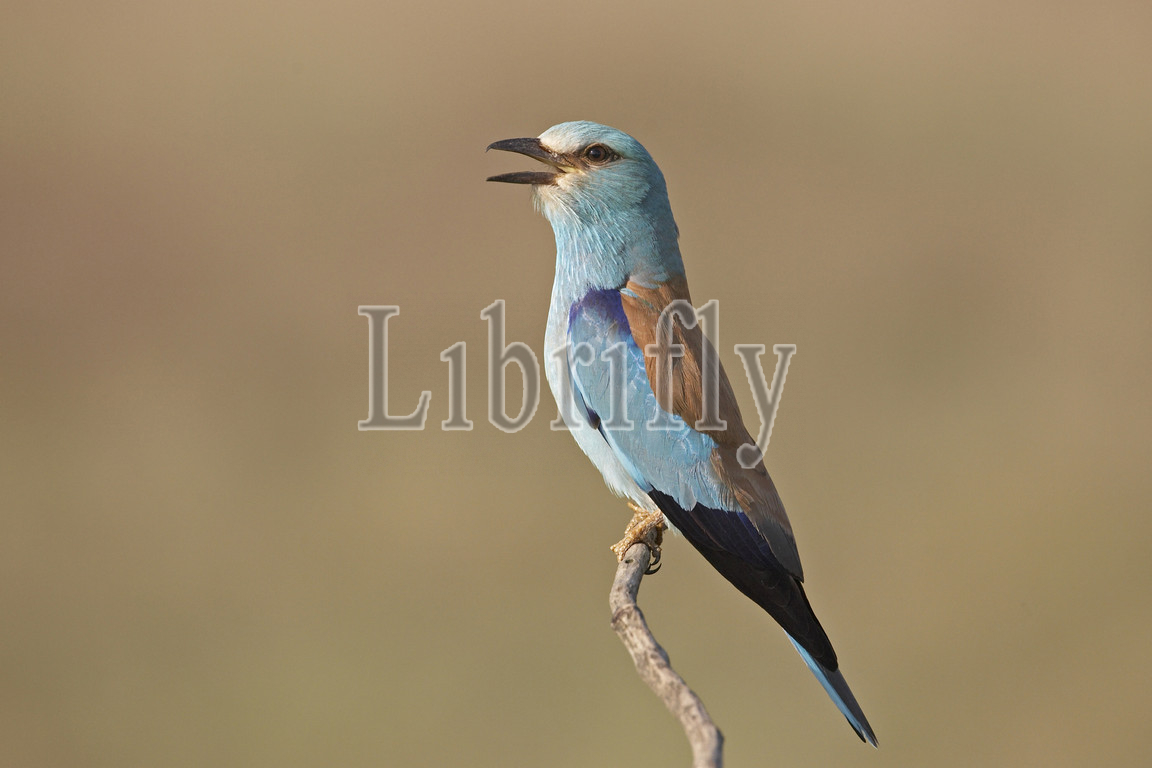 European Roller calling on branch, Coracias garrulus, Norway