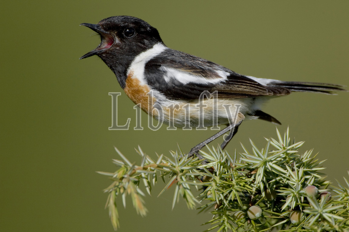 European Stonechat male singing, Saxicola rubicola