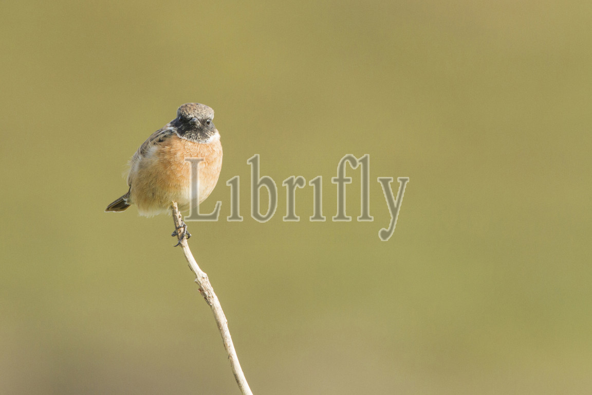 European Stonechat perched on branch, Saxicola rubicola, Netherlands