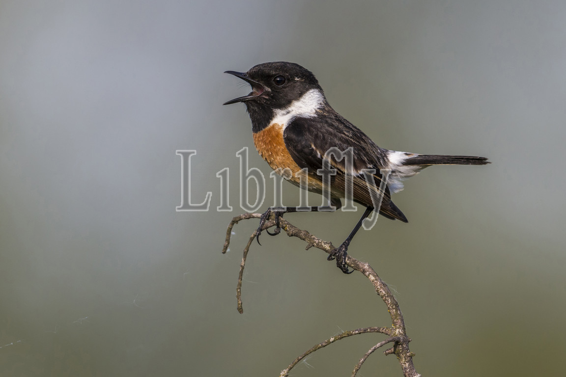 European Stonechat, singing, Saxicola rubicola, Italy, nature, bird, animal, wildlife, wild, fauna, natural, feather, sky, beak, wing, outdoor, freedom, colourful, Liszt, Natural History, ornithology, vertebrate animals, photography, color image