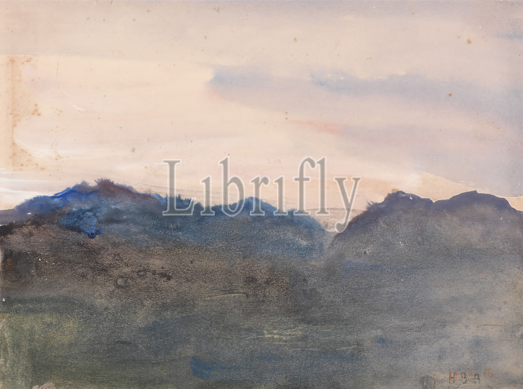 Evening Landscape, Hercules Brabazon Brabazon, 1821–1906, British, Watercolor, medium, slightly textured, cream wove paper mounted, thick, slightly textured, cream card, Mount, Sheet, evening, hills, landscape, mountains