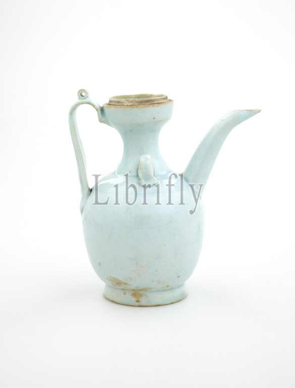 ewer with cover, Northern Song dynasty, Northern Song dynasty, 1100s, porcelain with bluish glaze and incised decoration, A) ewer: 5-1/2 x 3 x 5 in. B) cover: 3/4 x 1-3/4 x 1-3/4 in., Asian Art