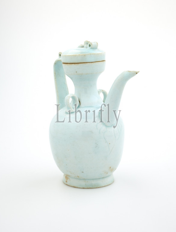 ewer with cover, Northern Song dynasty, Northern Song dynasty, 1100s, porcelain with bluish glaze and incised decoration, A) ewer: 5-1/2 x 3 x 5 in. B) cover: 3/4 x 1-3/4 x 1-3/4 in., Asian Art