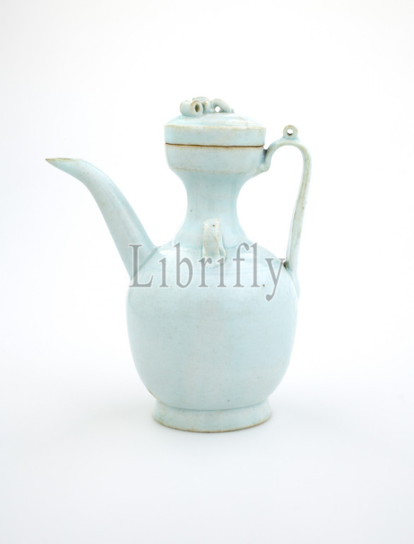 ewer with cover, Northern Song dynasty, Northern Song dynasty, 1100s, porcelain with bluish glaze and incised decoration, A) ewer: 5-1/2 x 3 x 5 in. B) cover: 3/4 x 1-3/4 x 1-3/4 in., Asian Art