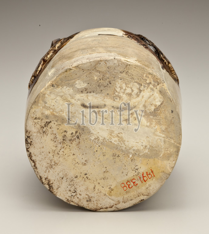 ewer with medallion appliqués of foliage and birds, Tang dynasty, Tang dynasty, 800s, stoneware with glaze, Changsha ware, 6-1/2 x 5-1/2 (diam.) in., Asian Art