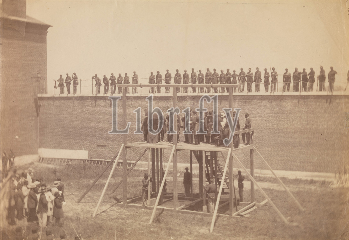 Execution, Conspirators, July 7, 1865, Albumen silver print, glass negative, Image, 16.8 x 24.2 cm, 6 5/8 9 1/2, Photographs, Alexander Gardner, American, Glasgow, Scotland, 1821–1882, Washington, D.C., intimate involvement, events following, President, Lincoln, assassination, challenged even, experienced twentieth-century, photojournalist, short, four months, Gardner documented, hundreds, portraits, views, complex national, news, stories, American history