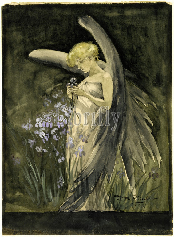 Fairy, Irises, 1888, Watercolor, gouache, graphite, off-white thick wood pulp wove card, 10 x 7 3/8, 25.4 18.7 cm, Drawings, Dora Wheeler, 1856–1940