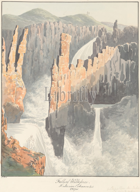 Falls, Wilberforce, Hood River, Charles Hamilton Smith, 1776–1859, Belgian, Watercolor, graphite, moderately thick, moderately textured, cream wove paper, Sheet, Binding, 16 1, 8 inches, 41 cm, landscape, marine art