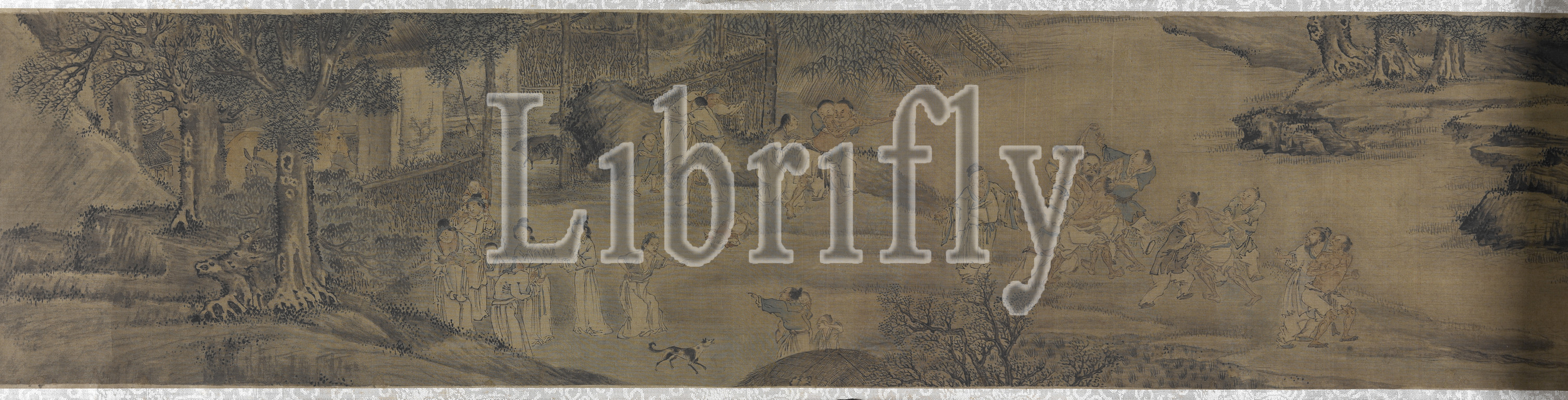 Farmers Fighting in Springtime, Zhang Chong (Chinese), Ming dynasty, period, Chongzhen, 1641, ink on silk, 8-1/2 x 28-11/16 in. (1st calligraphy) 8-1/2 x 70-1/2 in. (painting) 8-1/2 x 12-5/8 in. (2nd calligraphy), Signed: Zhang Zohng Artist seal: circular relief seal reads Ziyu Seal (unread): lower left on the end of the scroll Inscribed title by Chen Ruwei with 3 seals Colophon by Xie Wushan dated 1856 with 1 seal on painting, Asian Art