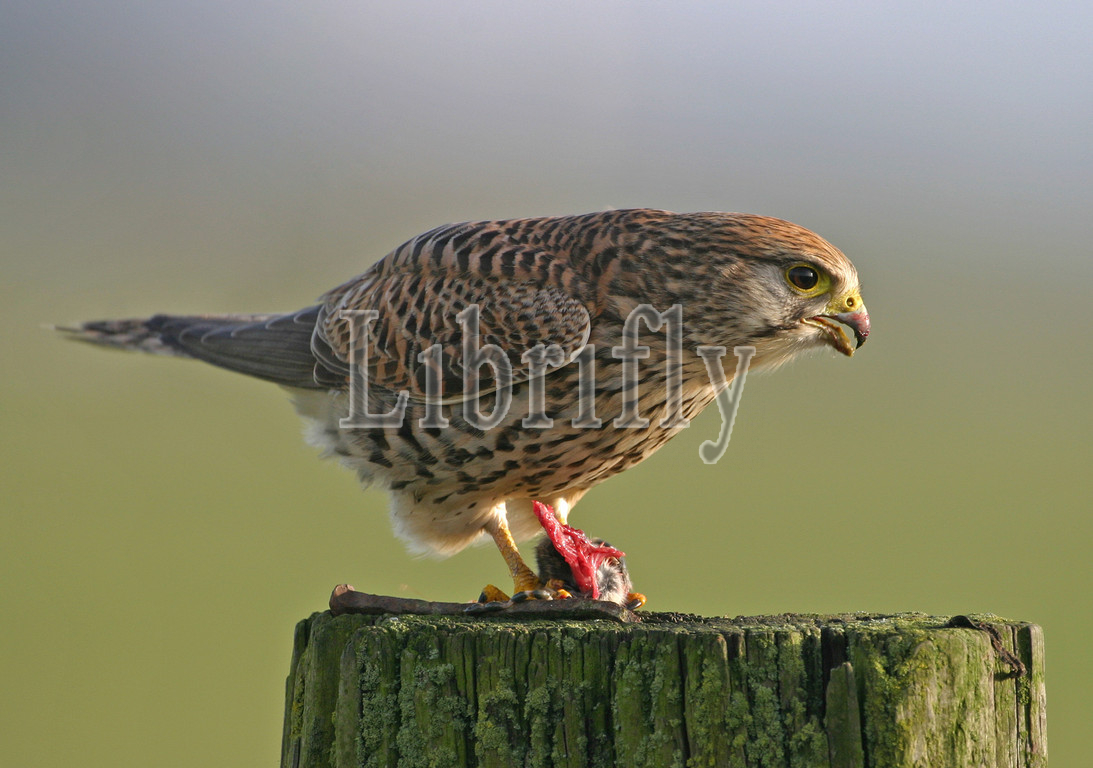 Female Common Kestrel with prey, Falco tinnunculus
