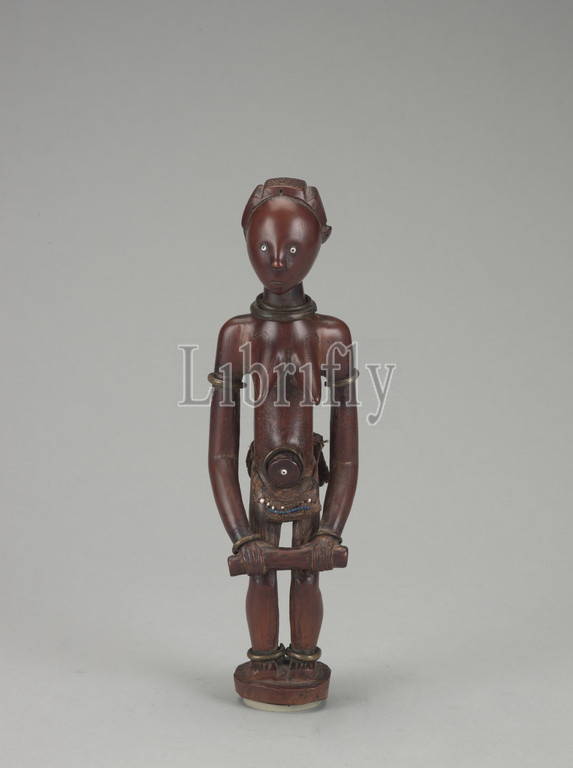 female figure, Fang people, late 19th century, early 20th century, wood, fiber, glass, brass, 9-3/4 x 3 x 3, African Art