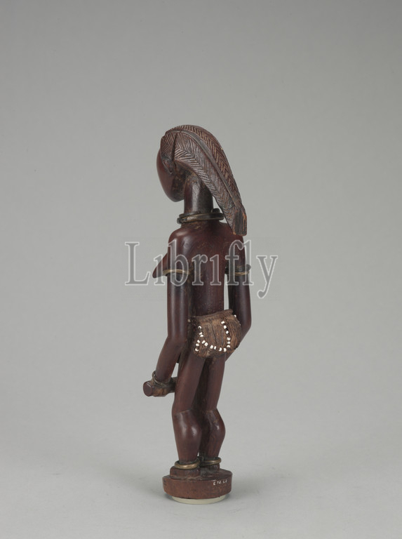 female figure, Fang people, late 19th century, early 20th century, wood, fiber, glass, brass, 9-3/4 x 3 x 3, African Art