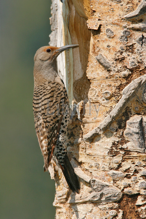 Female Northern Flicker at nest entrance, Colaptes auratus