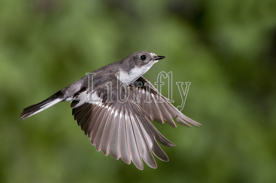 Female Pied Flycatcher in flight, The Netherlands