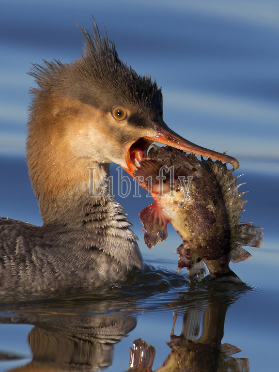 Female, Red-breasted Merganser, fish, Mergus serrator, Italy, nature, bird, animal, wildlife, wild, fauna, natural, feather, sky, beak, wing, outdoor, freedom, colourful, Liszt, Natural History, ornithology, vertebrate animals, photography, color image