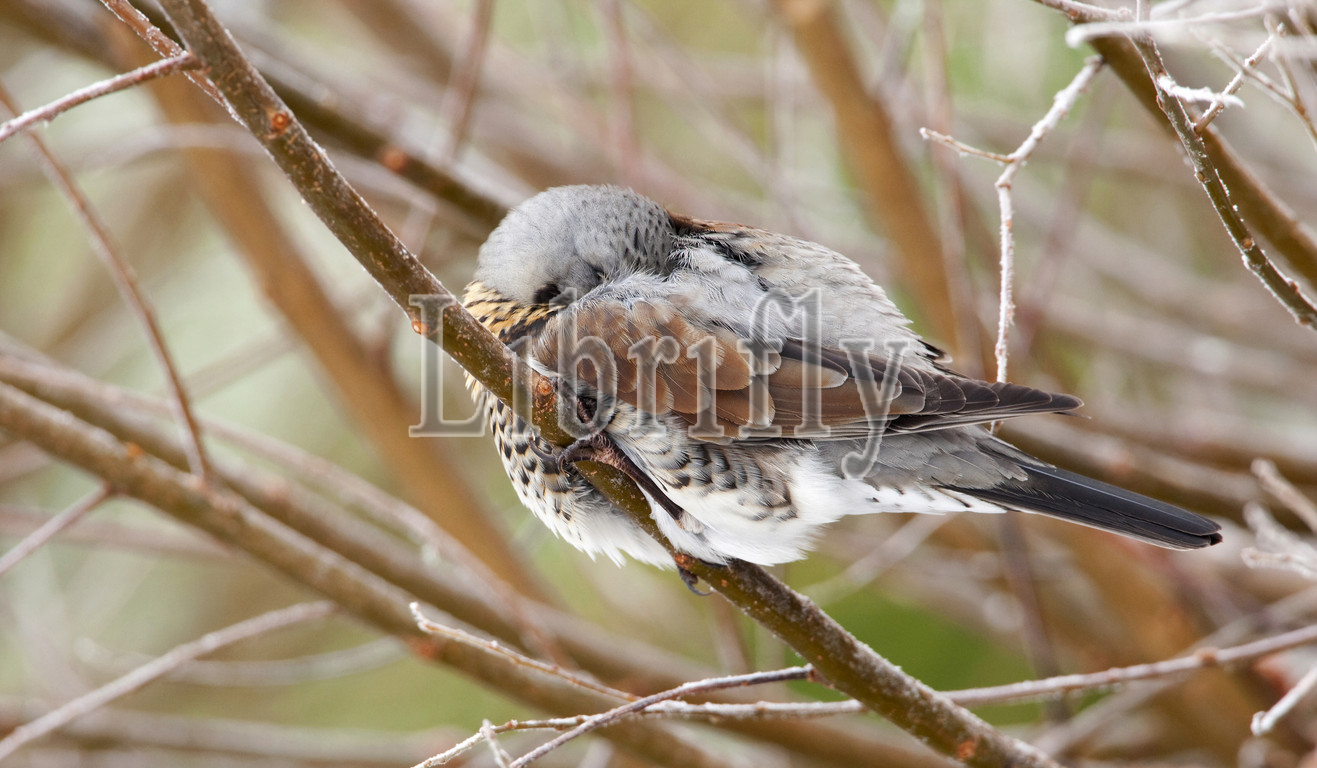Fieldfare in scrub, Turdus pilaris, Netherlands