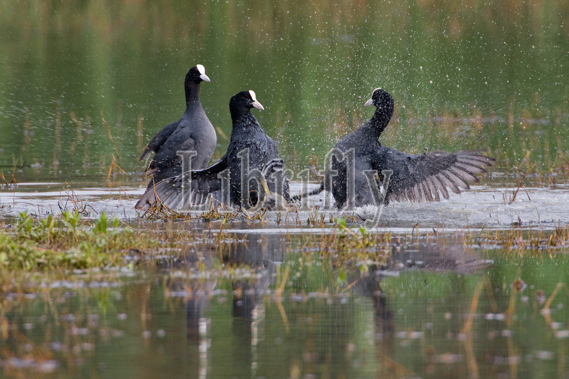 Fighting Eurasian Coots, Fulica atra, Italy