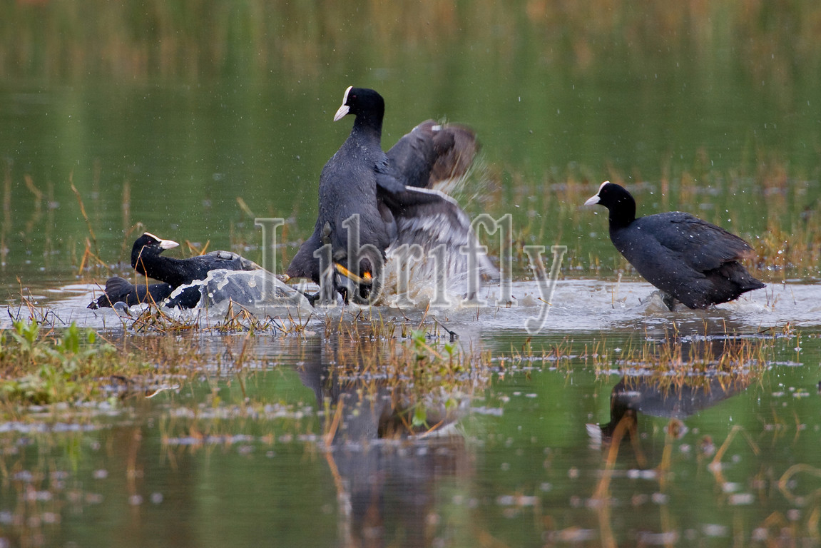 Fighting Eurasian Coots, Fulica atra, Italy