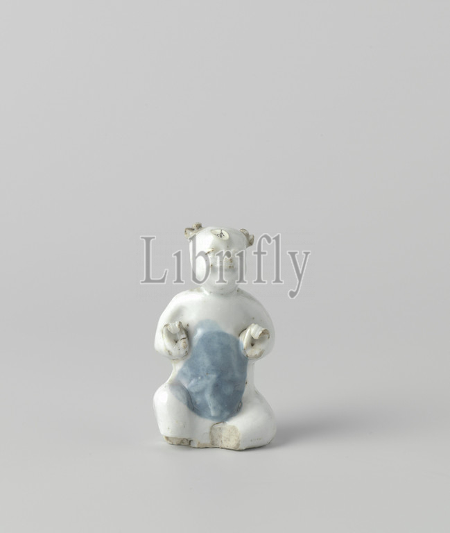 Figure of a seated boy, Porcelain statue, painted in underglaze blue. A seated boy. The feet are missing. Blue White., anonymous, China, c. 1573 - c. 1619, Ming-dynasty (1368-1644) / Wanli-period (1573-1619), porcelain (material), glaze, cobalt (mineral), vitrification, h 7.3 cm