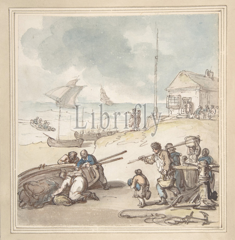 Figures, Seashore, late 18th–early 19th century, Pen, ink, watercolor, sheet, 6 3/8 x 6 1/8, 16.2 15.6 cm, Drawings, Thomas Rowlandson, British, London, 1757–1827