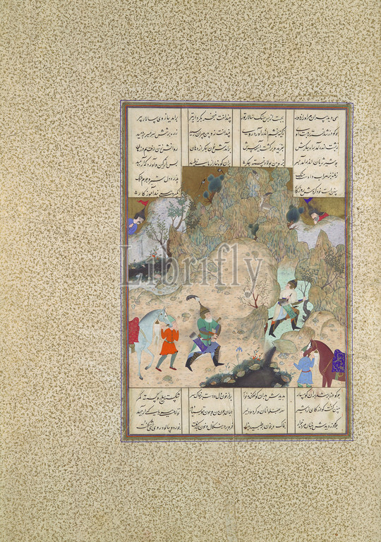 Final Joust, Rooks, Gudarz Versus Piran, Folio 346r, Shahnama, Book, Kings, Shah Tahmasp, ca, 1525–30, Iran, Tabriz, Opaque watercolor, ink, silver, gold, paper, Painting, H, 11 x W, 7 1/2, 27.9, 19 cm, Codices, Painting attributed to Qasim ibn 'Ali, active ca., 1525–60, artist, captured, essentials, tragic story, delicate sensitivity, Iranian Gudarz, wounded, old Turanian, warrior, Piran, respect, seasoned enemy, offered, safe passage, Turanian army
