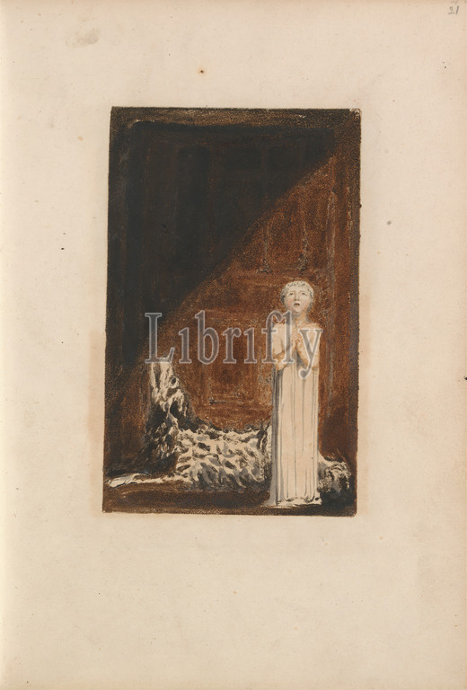 First Book, Urizen, Plate 25, Bentley 26, Print, William Blake, 1757–1827, British, 1794, Color-printed relief etching, orange-brown, watercolor, moderately thick, slightly textured, cream wove paper, Sheet, Plate, Spine, 10 1, 4 inches, 26 cm, children, dog, animal, infant, literary theme, religious, mythological subject, wall, wolf