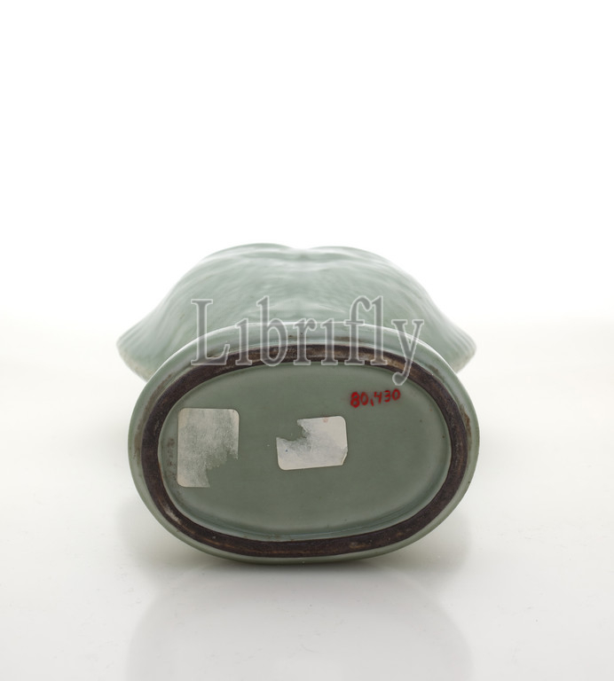 fish vase, Qing dynasty, porcelain, celadon glaze, 9-7/8 x 5-3/4 x 3, Asian Art