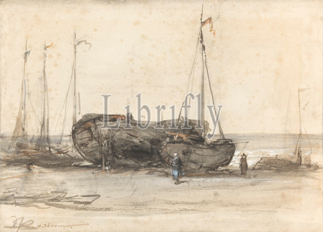 Fishing boats, beach, Scheveningen, sailing-ship, sailing-boat, Johannes Bosboom, mentioned, object, 1873, paper, watercolor, paint, brush