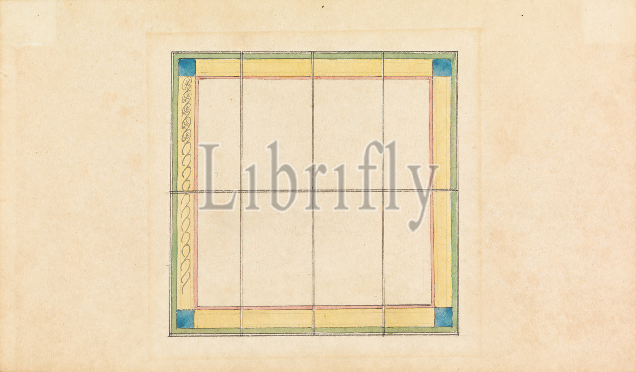 Five Ceiling Designs, John Sanderson, active 1730–died 1774, British, Watercolor, pen, black ink, medium, slightly textured, beige wove paper, Sheet, architectural subject, ceilings, designs, scrolling foliage