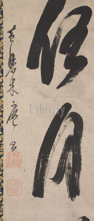 Five character calligraphy, Muan Xingtao, Chinese, 1611-1684, Edo, 1670, ink, paper, 82-3/4 x 11-13/16, overall, knobs, 50-5/16 x 11, image, Inscribed, xian chuang ren yue ming, Jpse, kansō nin getsumei, Japanese characters, bright moon shines leisurely, window Signed, Obaku Mokuan hitsu, Square intaglio seal, Shakkai Tō, Monk Tō's seal, Square relief seal, Mokuan shi, Rectangular intaglio seal, Hōgai gakushi, Scholar-gentleman retired, world, Asian Art
