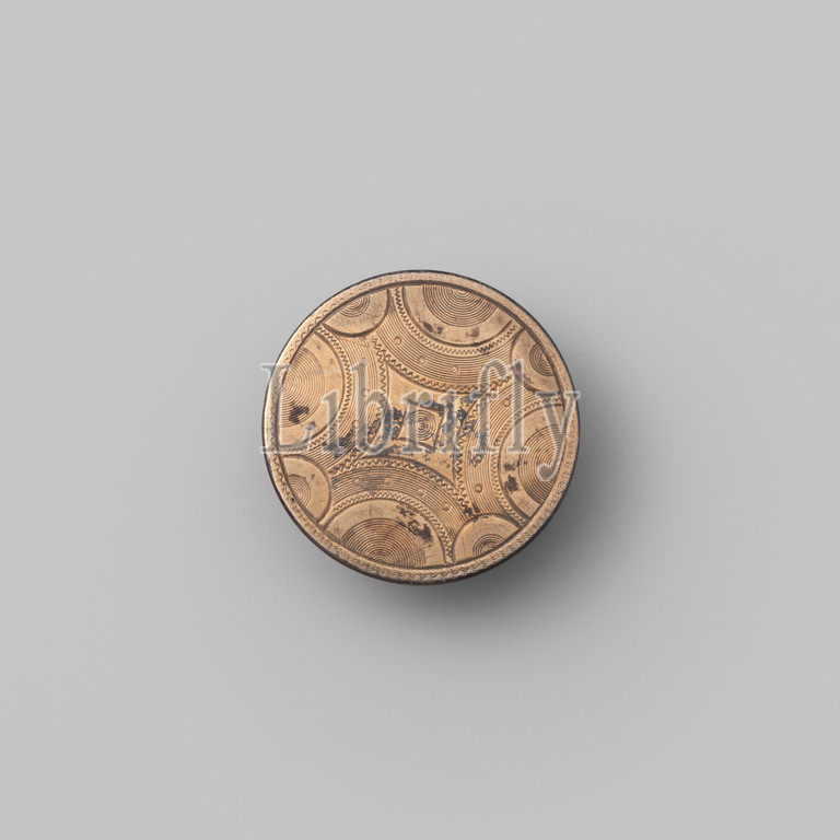Flat round cufflink, gilded black-and-white, decorated, guilloches, diamond, hollow sides, eight concentric smooth circular arcs, Unreadable marks, beaten, Netherlands, c, 1850, 1900, geheel, engraving