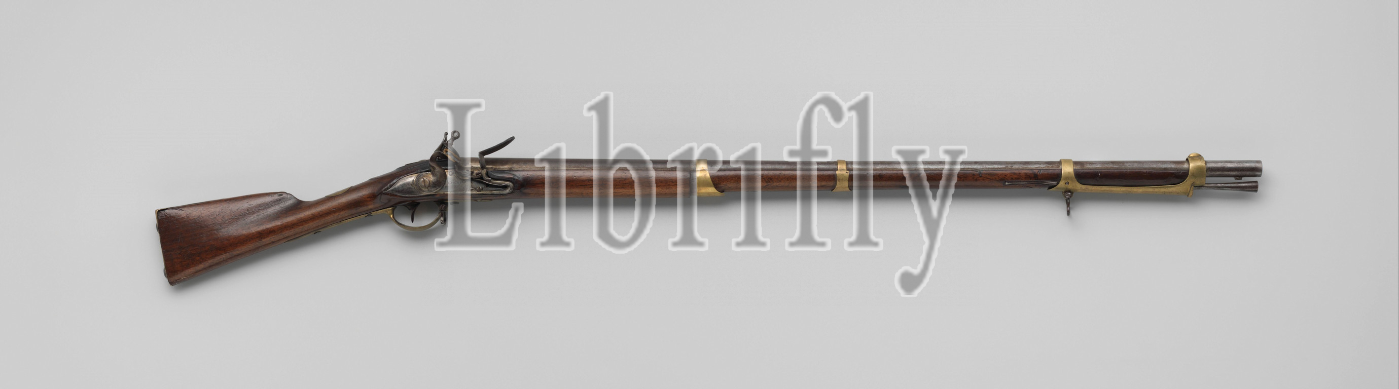 Flint Cadet Rifle, State Army, lock, unprocessed except, signature, lock plate, inside, stamped, letters iG, barrel, top, coat, arms, Amsterdam, unidentifiable mark, uppercase letter M, bottom, bayonet net under, trumpet, flask, easily cut, brass fittings consist, four sliding barges according, Austrian model, set, iron hinged brackets, S-shaped screw plate, unadorned thumb plate, steel loading stick, Hendrik Bosman, 1780, 1800, copper, metal, iron, steel, alloy, engraving, l 115 3