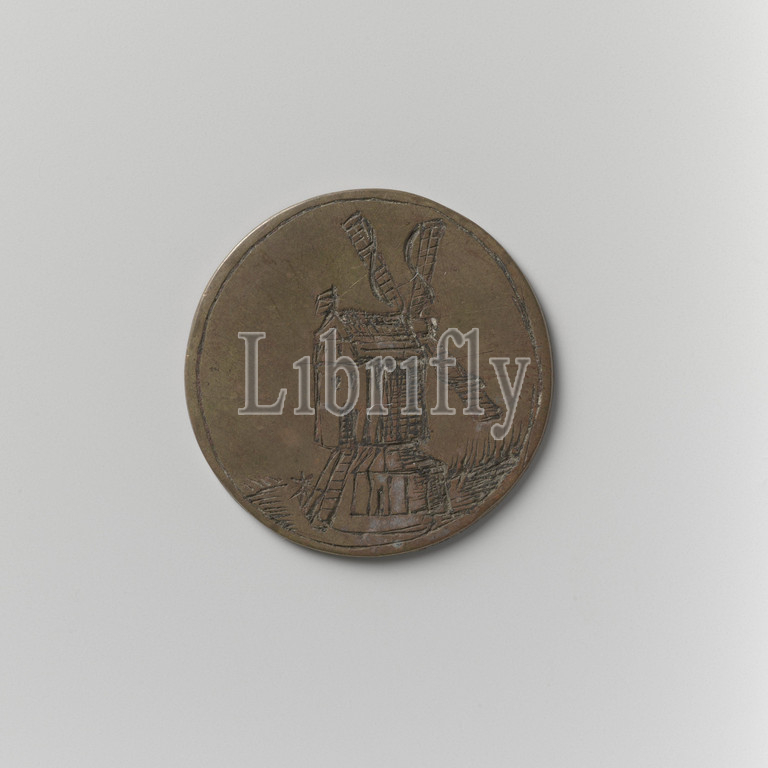 Flour Miller's Guild of Amsterdam, guild token of Wm. Voogelezang, Brass medal. Front: flour mill. Reverse: inscription, Wm. Voogelezang, anonymous, Amsterdam, 1829, brass (alloy), engraving, d 3 cm × w 7.47 gr