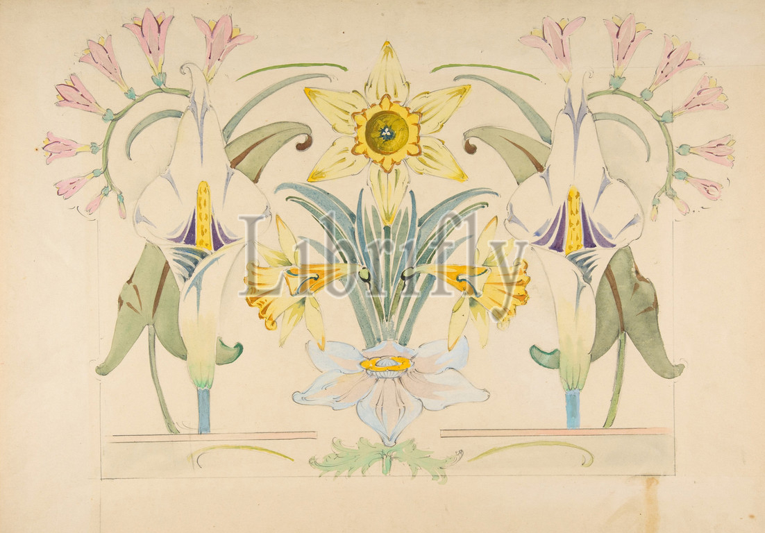Flower Design, Daffodils, Calla Lilies, 19th century, Watercolor, gouache, graphite, 13 x 18 9/16, 33 47.1 cm, Drawings, Anonymous, French