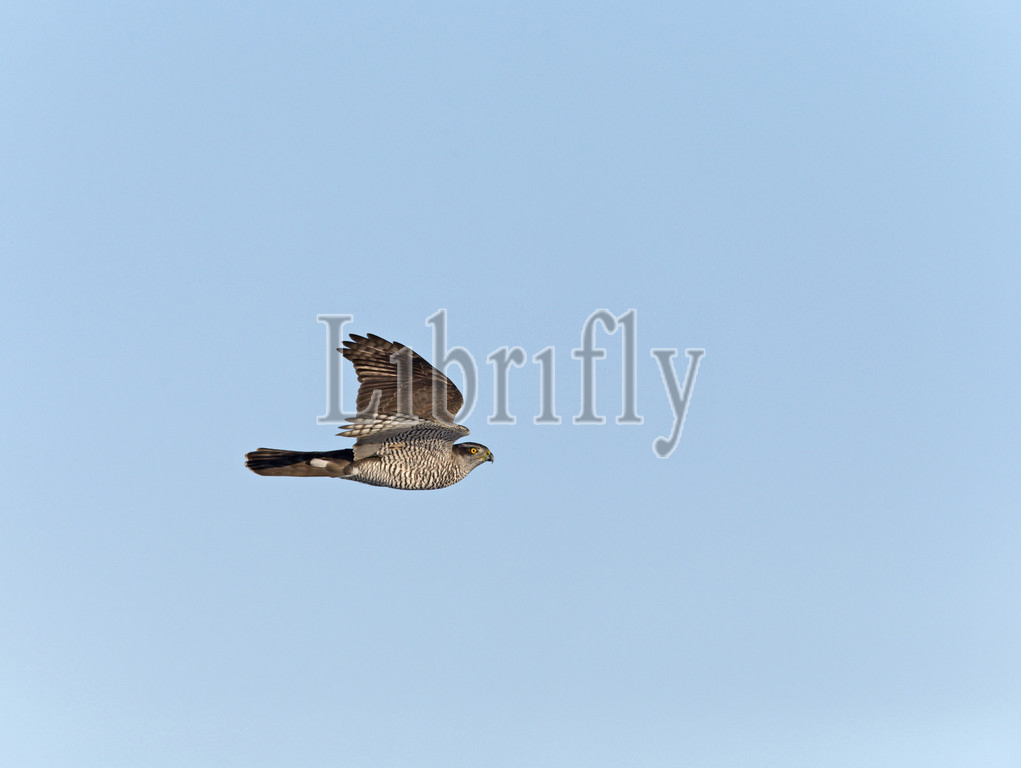 Flying adult Northern Goshawk, Accipiter gentilis, Netherlands