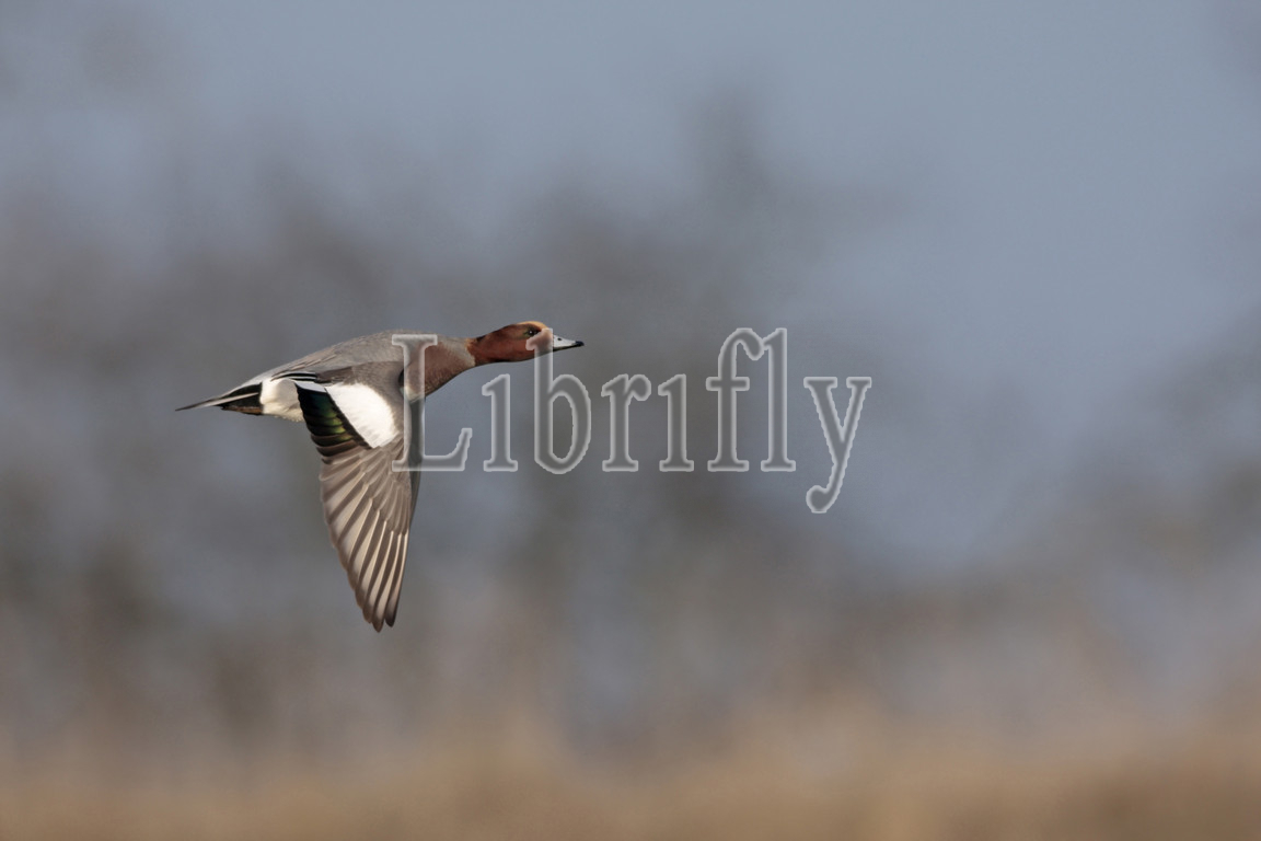 Flying male Eurasian Wigeon, Mareca penelope, Netherlands