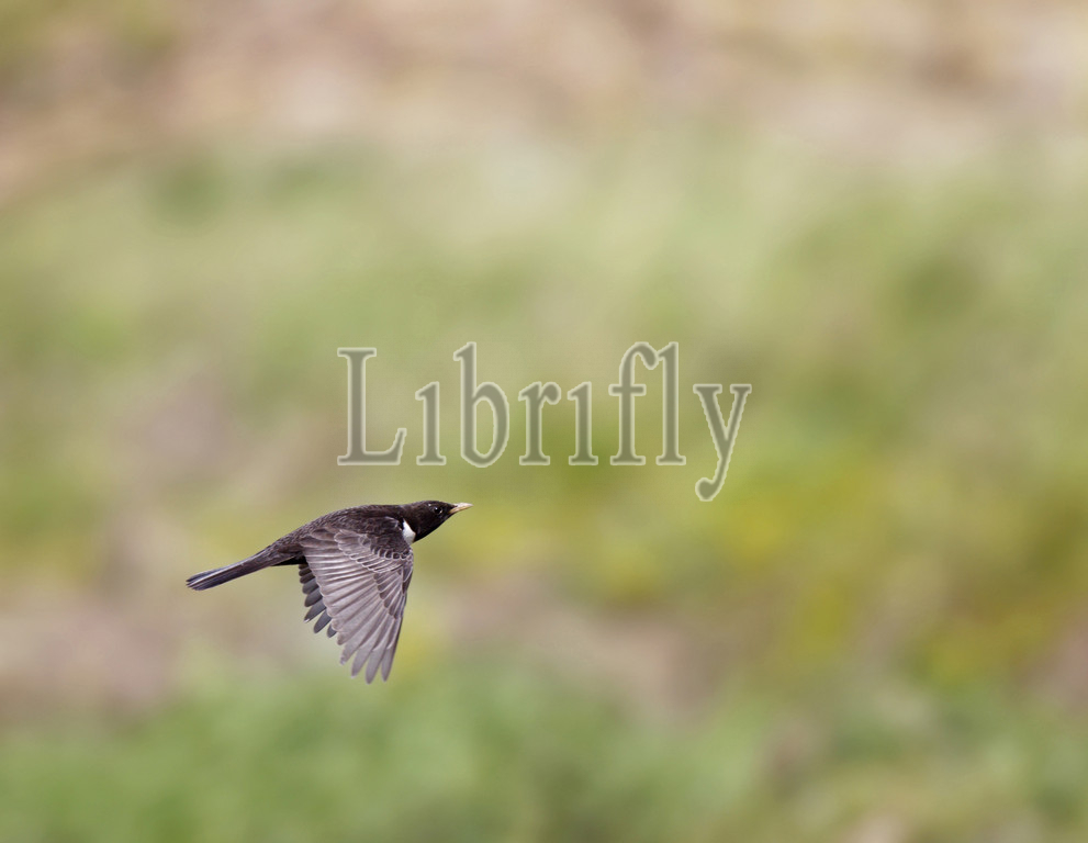 Flying, migrating, Male, Ring Ouzel, spring migration, Turdus torquatus, Netherlands, nature, bird, animal, wildlife, wild, fauna, natural, feather, sky, beak, wing, outdoor, freedom, colourful, Liszt, Natural History, ornithology, vertebrate animals, photography, color image
