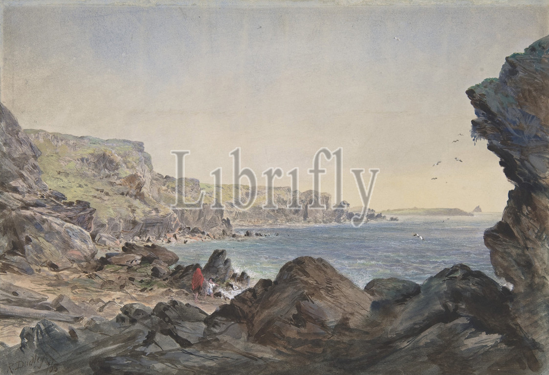 Foilhummerum Bay, Valentia, Looking Seawards from the Point at Which the Cable Reaches the Shore of Ireland, 1865–66, Watercolor over graphite with touches of gouache, Sheet: 6 5/16 × 9 1/4 in. (16 × 23.5 cm), Drawings, Robert Charles Dudley (British, 1826–1909), One of the 19th century's great technological achievements was to lay a telegraphic cable beneath the Atlantic, allowing messages to speed back and forth between North America and Europe in minutes, rather than ten or twelve days by steamer