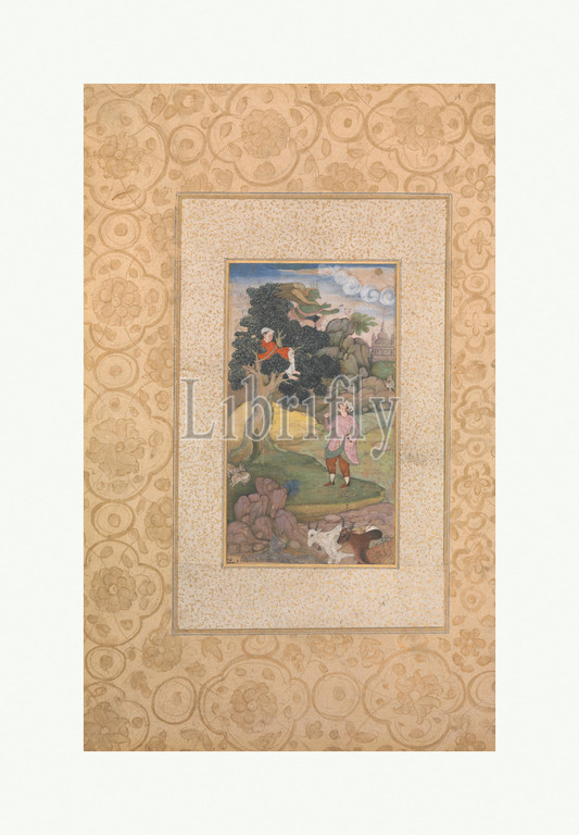 Folio, Kathasaritsagara, ca, 1590, Attributed, India, Ink, opaque watercolor, gold, paper, 12 3/4 x 8 1/8, 32.4 20.6 cm, Codices, folio, vast compilation, tales, Sanskrit written, eleventh-century poet, Somadeva, amusement, Kashmiri queen, Suryamati, translated, Persian, Akbar, r, 1556–1605, late sixteenth, century