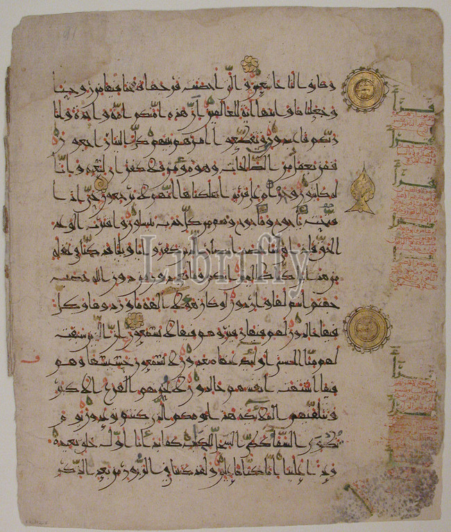 Folio, Qur, Manuscript, second half 10th century, Eastern Islamic Lands, Ink, opaque watercolor, gold, paper, H, 14 1/4, 36.2 cm, Codices