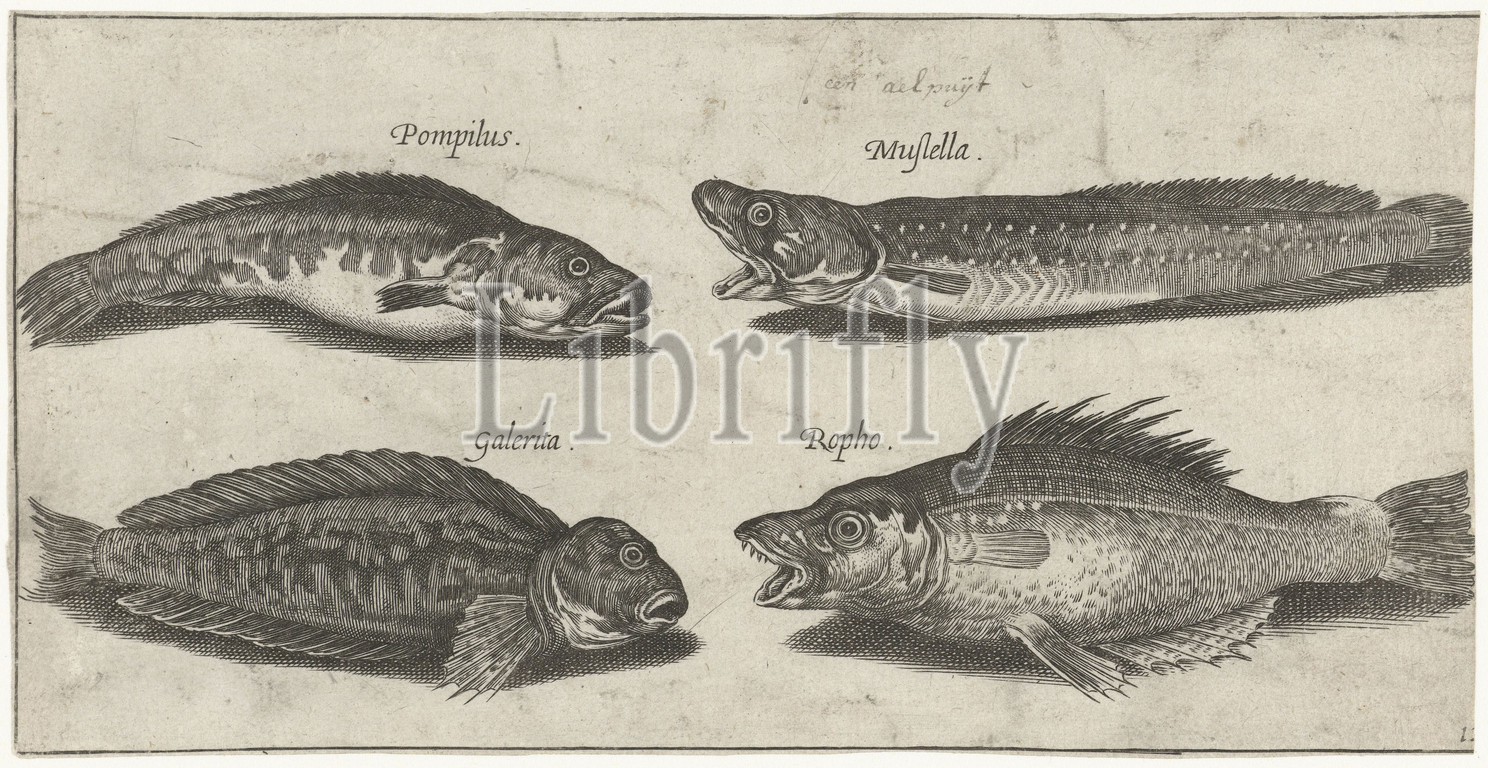 Fork cod, grouper, horned slime fish, black fish Fish, series title, Piscivm vivae icones, fishes, Pierre Firens, 1600, 1638, paper, engraving